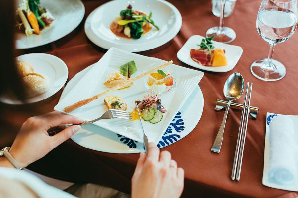本館2階のレストラン「Festa del mare(フェスタ デル マー)」は、天草の魚介と熊本県産有機野菜をたっぷり使った天草イタリアンを味わう店。宿泊すれば夕景のなかでディナーを楽しむこともできますが、今回は週末だけのランチを予約しました。